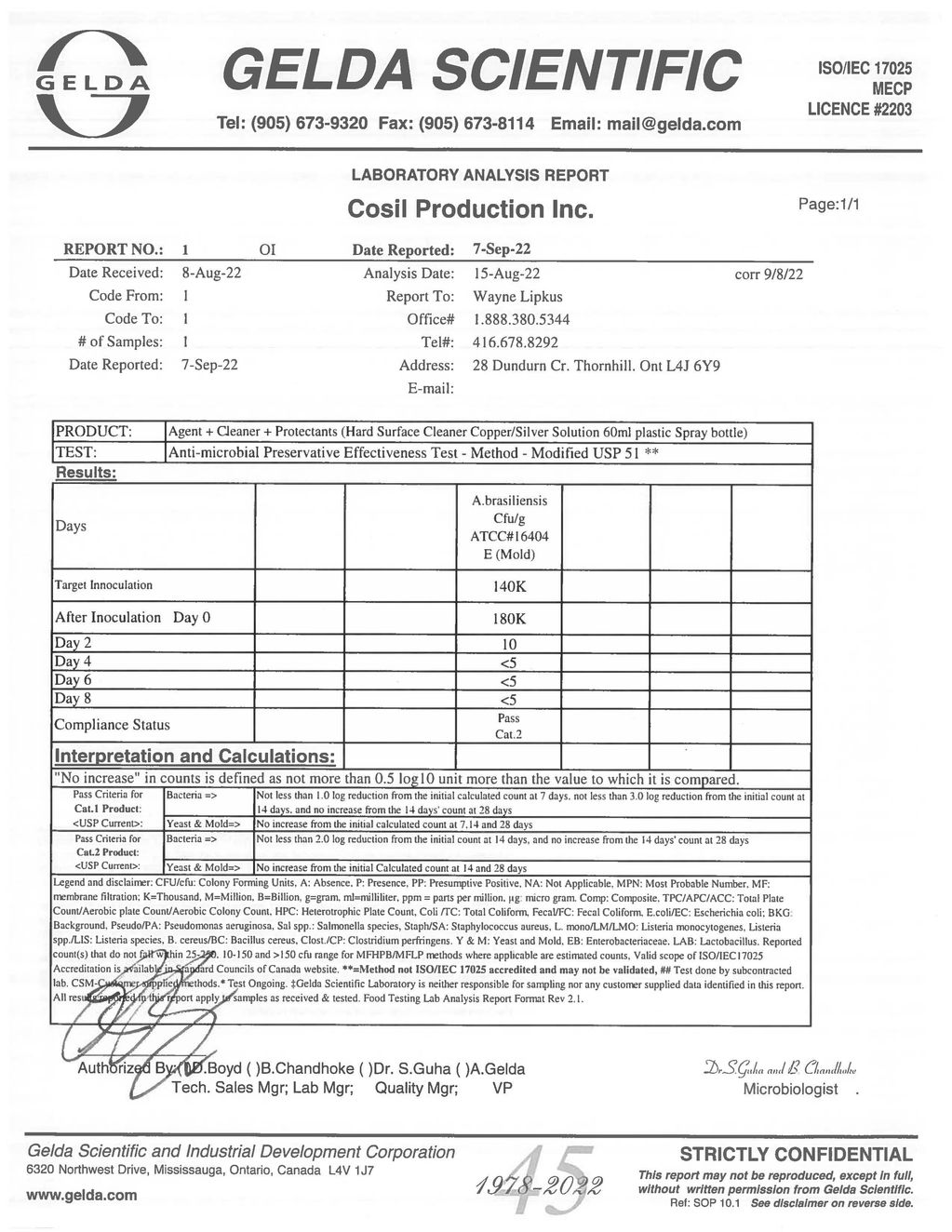 Standard Test: Anti-microbial Preservative Effectiveness Test - Method - Modified USP 51